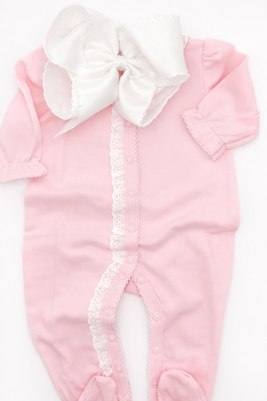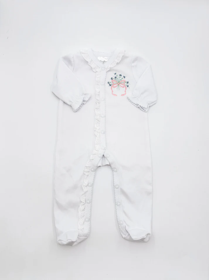 So excited to introduce our new eyelet trim footies! Cuddle those sweet babies in our softest organic cotton material! Eyelet detail added with our picot trim makes the PERFECT little outfit!