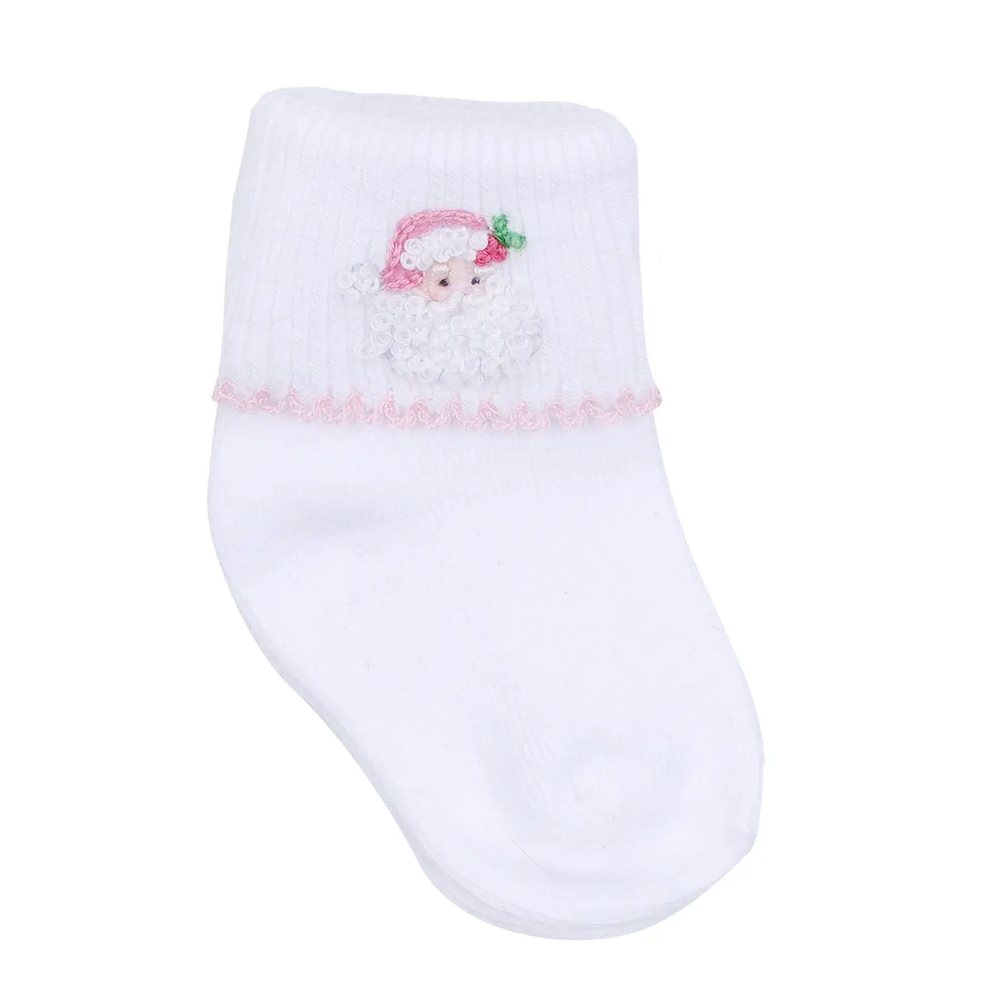 Complete her festive outfit with our Santa Baby Embroidered Socks - Pink. Inspired by the joyful spirit of Santa Claus, these charming white socks, crafted from luxurious Pima Cotton, feature a sweet hand-embroidered Santa for a delightful finishing touch.