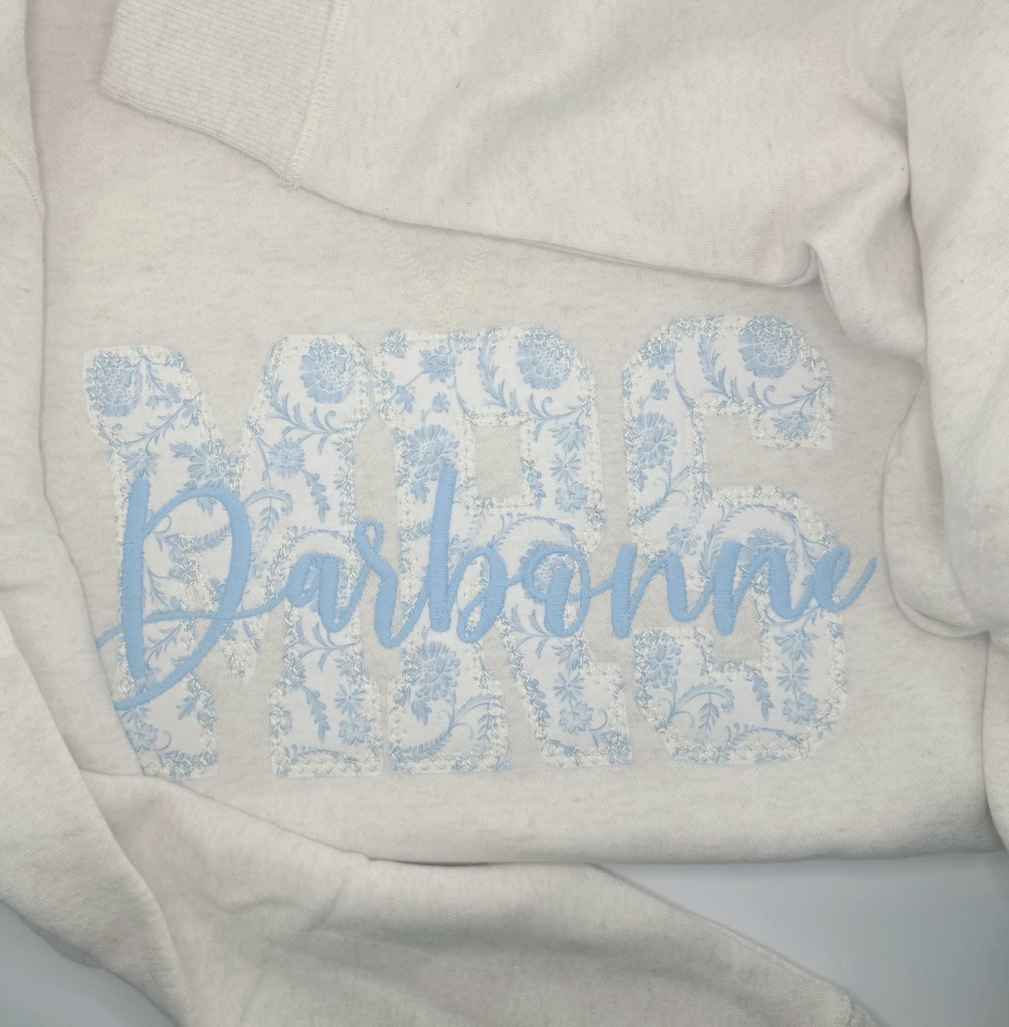 When ordering please include the name you would like. In the notes you can pick a different color sweatshirt.