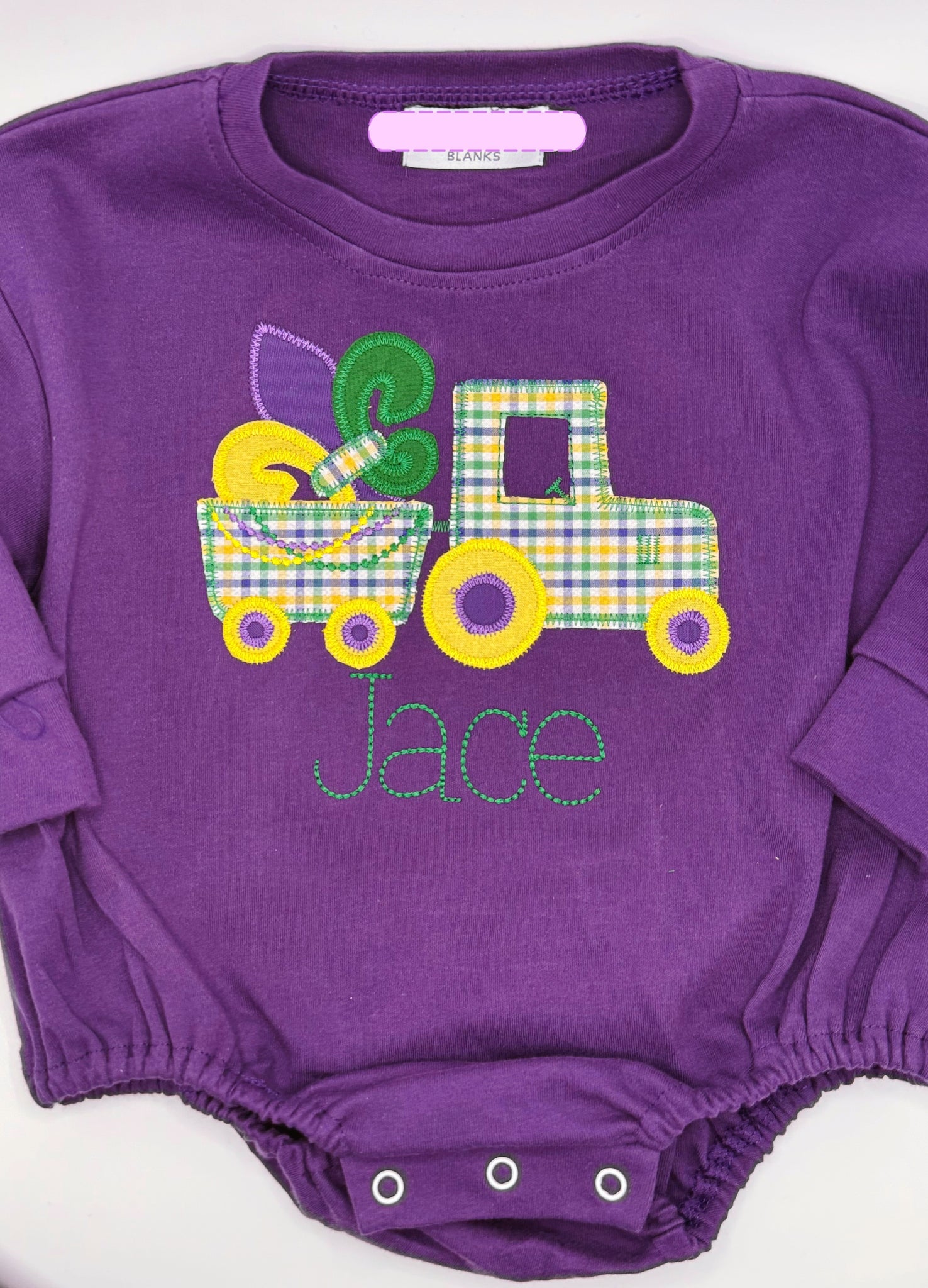 Get your little ready for all the Mardi Gras Fun!! Our custom tractor applique is the perfect piece for parades and festivals.
